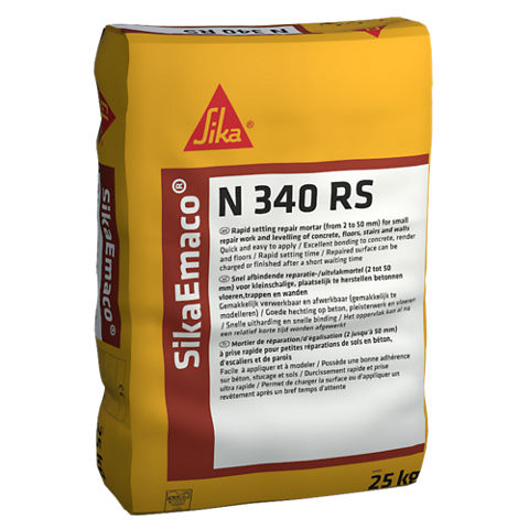 SikaEmaco® N 340 RS is een snel zettende reparatie/uitvlakmortel. SikaEmaco® N 340 RS is een mengsel van speciale soorten cement, aggregaten en synthetische materialen (synthetische hars dispersies).