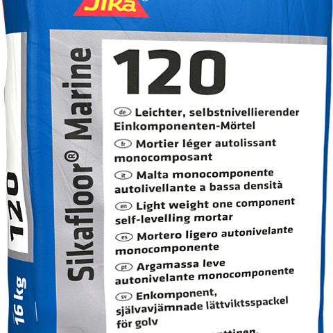 Sikafloor® Marine-120 is een 1-component lichtgewicht en zelfnivellerende mortel op basis van polymeer-gemodificeerd cement. Sikafloor® Marine-120 is getest volgens het FTP Codesysteem en goedgekeurd conform IMO-Marine Equipment Directives.