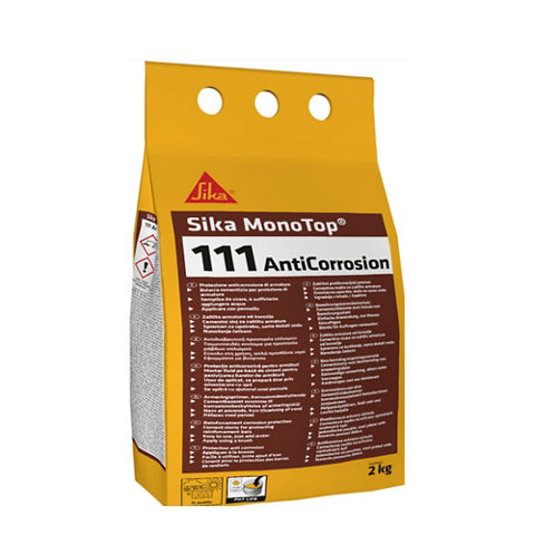 Sika MonoTop®-111 AntiCorrosion is een 1-component, cementgebonden, met polymeren gemodificeerde slurry, die microsilicaten bevat en gebruikt wordt als corrosiebescherming van betonstaal en als hechtbrug voor de reparatiemortel.