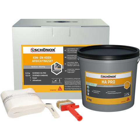 bestaande uit 4 kg SCHÖNOX HA PRO, 12 meter SCHÖNOX KIMBAND, 1 kwast en 1 snijmes